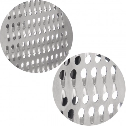 Den fine 2 mm og den grove 6 mm side klarer grøntsager, frugt, oste og chokolade – fra fine flager til større stykker.
