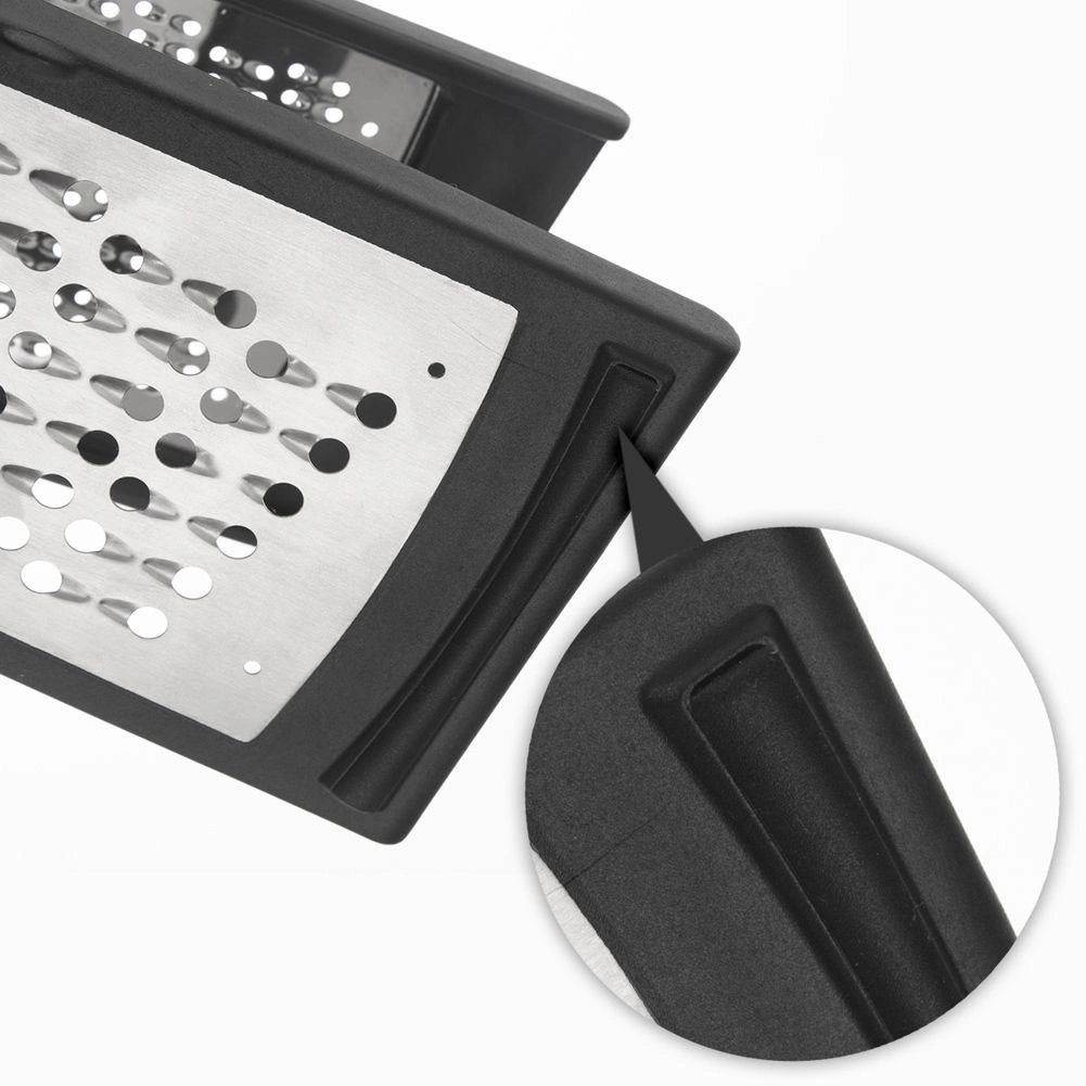 Takket være holdbart rustfrit stål og kvalitetsplast er rivejernet robust og samtidig let at håndtere. Beholderen opfanger sikkert det revne og gør det nemt at hælde i en skål eller direkte i retten. Rivejernet er nemt at rengøre i opvaskemaskinen, hvilket sparer tid og besvær.