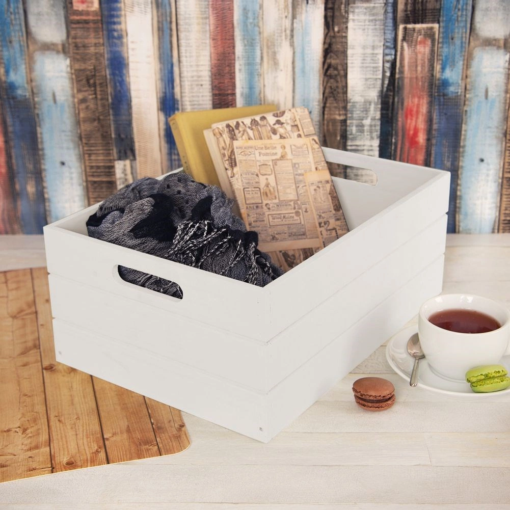 Opdag en elegant og robust løsning til organisering i alle rum. Denne hvide trækasse kendetegnes ved høj kvalitet, rektangulær form og udskårne håndtag for komfortabel transport. Den passer perfekt i både klassiske og moderne hjem og understreger et rent og ryddeligt udtryk.