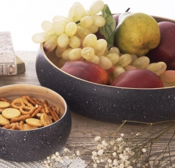 Denne stilfulde bambusskål kombinerer det naturlige look af lyst træ med en moderne gråspættet yderside. Med en kapacitet på 4 l og en bred, lav form er den perfekt til daglig servering af salater, frugt, snacks og varme retter op til 40 °C.