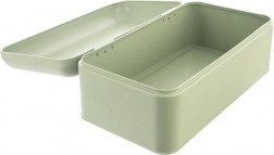 Opdag praktisk opbevaring af bagværk med GREENISH-brødkassen i tidløs mintgrøn. Det robuste metal beskytter indholdet mod at blive klemt og mod støv, mens låget på solide hængsler åbner glat og stille ved hjælp af det elegante metalhåndtag. Takket være det rummelige indre kan du nemt opbevare både brød, boller og baguetter.