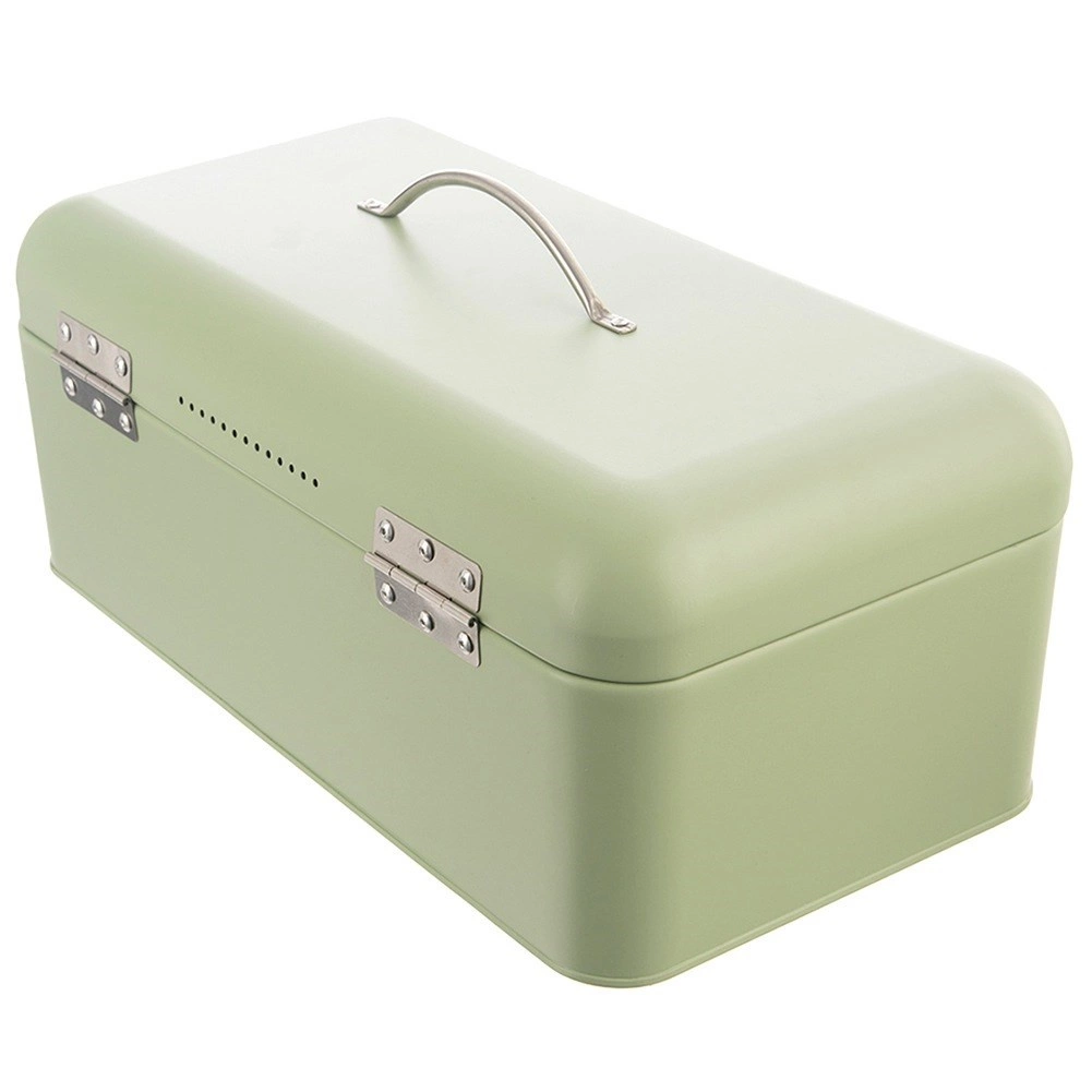 Mat mintgrøn overflade, afrundede hjørner og sølvfarvet håndtag giver brødkassen et elegant udseende og lang levetid.