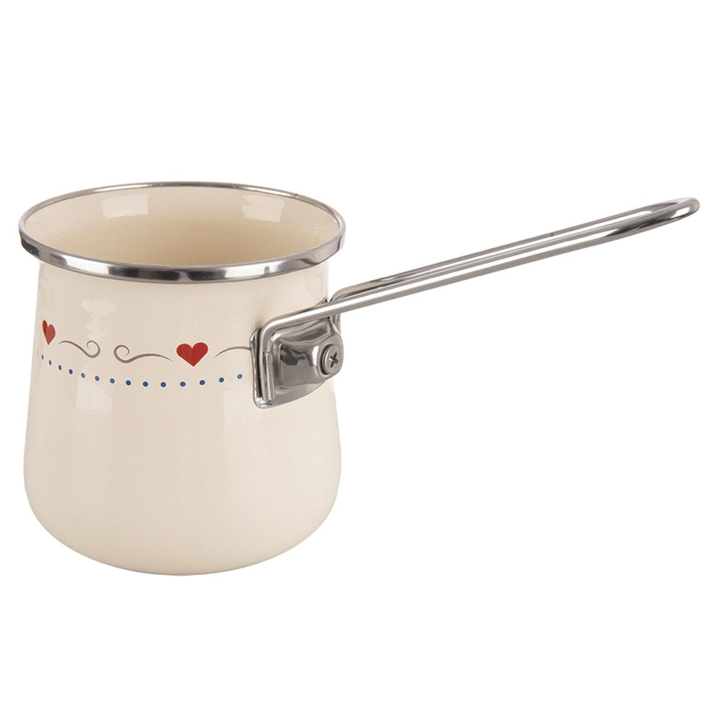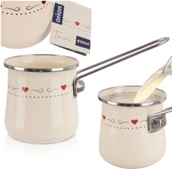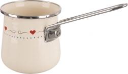 Den flødefarvede cezve TONCA er en praktisk og stilfuld hjælper for elskere af aromatisk kaffe. Den emaljerede overflade er sundhedsvenlig og sikker selv for allergikere, mens kanter og håndtag i rustfrit stål sikrer holdbarhed og behagelig håndtering. Med 600 ml kan du brygge kaffe til både dig selv og dine gæster.