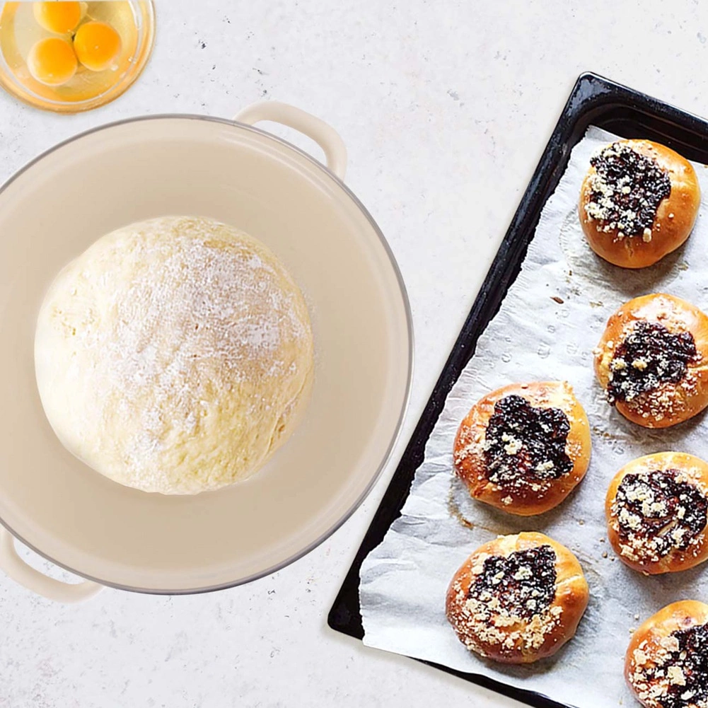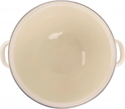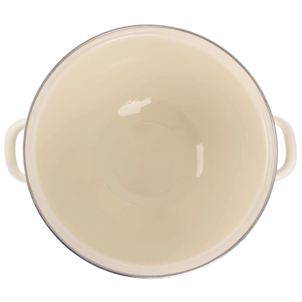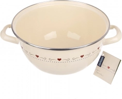 Denne stilfulde retro emaljerede skål TONCA er en fremragende hjælper i ethvert køkken. Fremstillet af kvalitets emaljeret stål i cremefarve med et diskret hjertemotiv og med rustfri kant for øget holdbarhed. Volumen 5 l giver rigelig plads til tilberedning af større portioner, salater eller dej. Takket være de to solide håndtag er den nem at bære, og du kan også servere retter direkte på bordet i den.