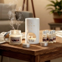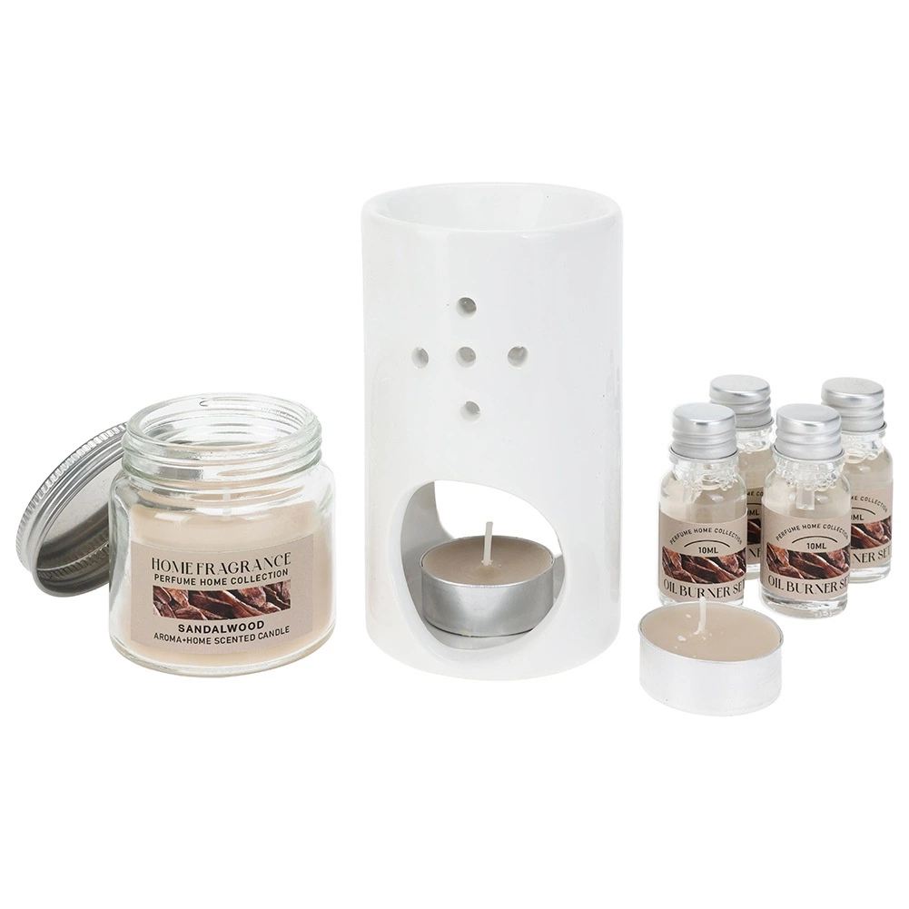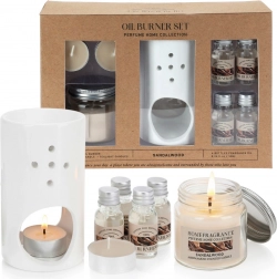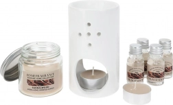 Dette stilfulde aromaterapi-sæt indeholder alt, hvad du behøver for at skabe en afslappende stemning. Den keramiske aromalampe opvarmer skånsomt olierne og frigiver deres rige duft, som fylder rummet og hjælper dig med at slappe af efter en krævende dag. Alt er pakket i en elegant æske med vindue, så sættet er klar til at blive givet som gave.