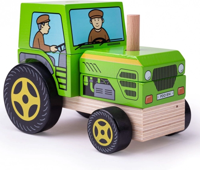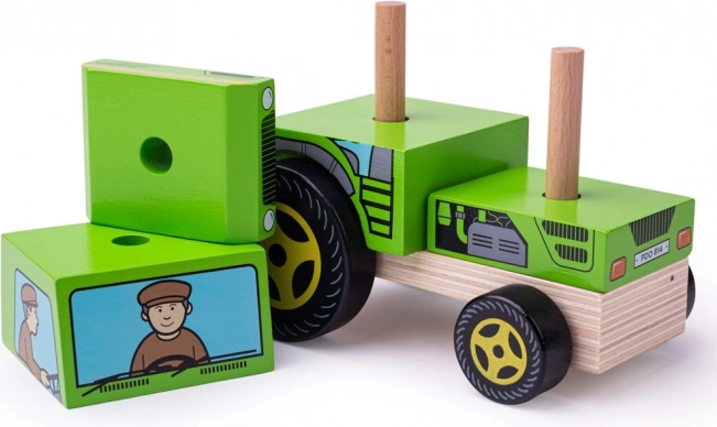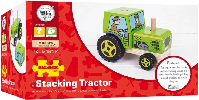 Denne trætraktor fra BIGJIGS kombinerer en stableleg med et køretøj til leg. Før turen går ud på “marken”, skal børnene først placere og samle delene korrekt på pinde, hvilket på en sjov måde udvikler logik og tålmodighed. Takket være de bevægelige hjul er den derefter klar til at køre rundt på børneværelset.