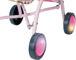Den stilfulde og robuste dukke-klapvogn BABY born Happy Birthday er et fantastisk supplement til hverdagens leg. Takket være det højdejusterbare håndtag kan den nemt tilpasses barnets højde og er behagelig at styre. Den solide konstruktion og de farvede hjul sikrer stabil kørsel på både tæpper og glatte overflader.