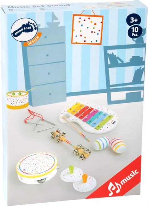 Opdag glæden ved musik med dette søde, prikkede sæt fra Small Foot – ideelt til børns første musikalske leg. Sættet tilbyder 6 forskellige instrumenter med unikke lyde og støtter udvikling af rytme, koordination og hørelse. Takket være den kvalitetsrige kombination af træ og metal er sættet holdbart og sikkert for børn fra 3 år. Dette er ikke musikinstrumenter, men legetøj til sjov.