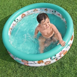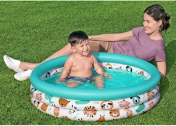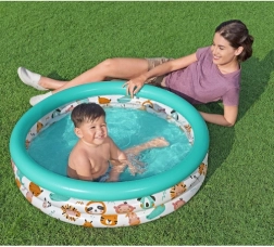 Giv børnene glæde med deres eget lille soppebassin. Den runde BESTWAY-pool med en diameter på 102 cm og en højde på 25 cm passer på enhver græsplæne eller terrasse. Den bløde øverste kant og tre separate luftkamre sikrer stabilitet og sikkerhed under legen, mens det kvalitetsrige PVC modstår almindelig brug.