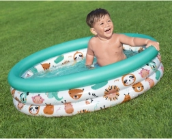 Tre separate oppustelige ringe øger stabiliteten og komforten under legen, selv når poolen kun er delvist fyldt.