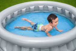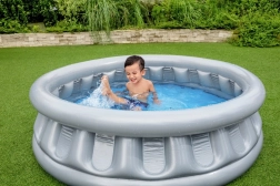 Den oppustelige pool i rumskibsform giver børn masser af sommersjov og behagelig afkøling. Takket være den bløde oppustelige bund og de behagelige sider, der fungerer som ryglæn, er opholdet i vandet komfortabelt selv for de mindste. Poolen er nem at puste op og tømme, så opbevaring og transport er en leg.