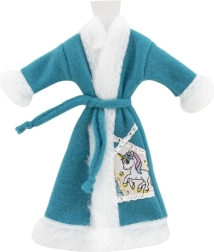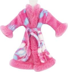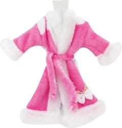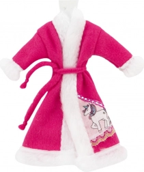 Stilfuld dukke-morgenkåbe med fløjlsblød overflade og bindebælte varmer efter badet og under aftenrutinerne. Fås i mix af farver og motiver (f.eks. enhjørning) og er nem at kombinere med andre dukketøj.