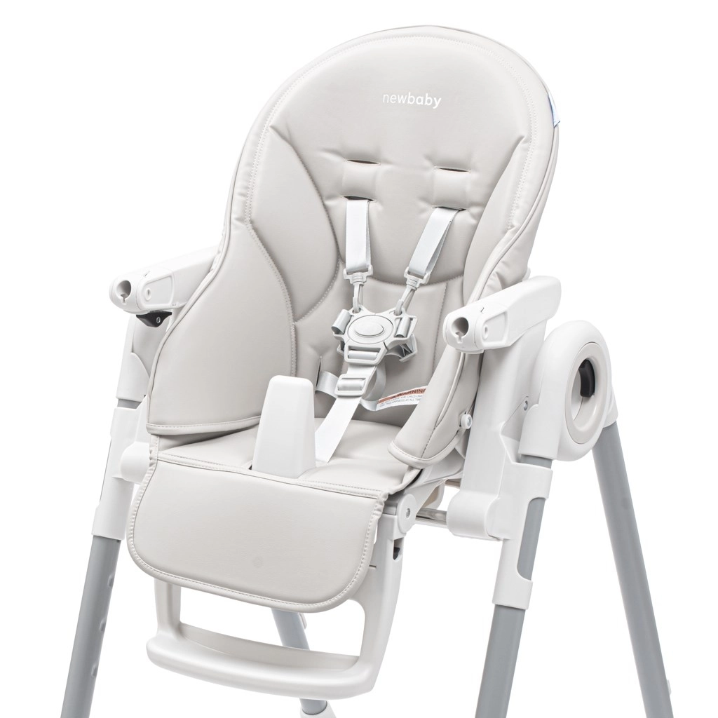 Højstolen NEW BABY Iris er designet til behagelig daglig brug. Takket være den bløde polstring i slidstærkt økolæder er den let at rengøre, og det moderne design passer ind i ethvert hjem. Justerbart ryglæn, sædehøjde og fodstøtte tilpasses barnets vækst og aktuelle behov.