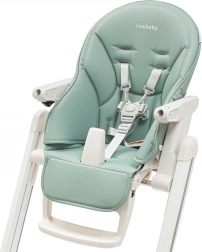Højstolen New Baby Muka er designet til maksimal komfort og sikkerhed for børn, der allerede kan sidde selv. Det stilfulde udseende i dusty green passer godt ind i moderne interiører, mens den bløde polstring i økolæder er behagelig at røre ved og let at rengøre.