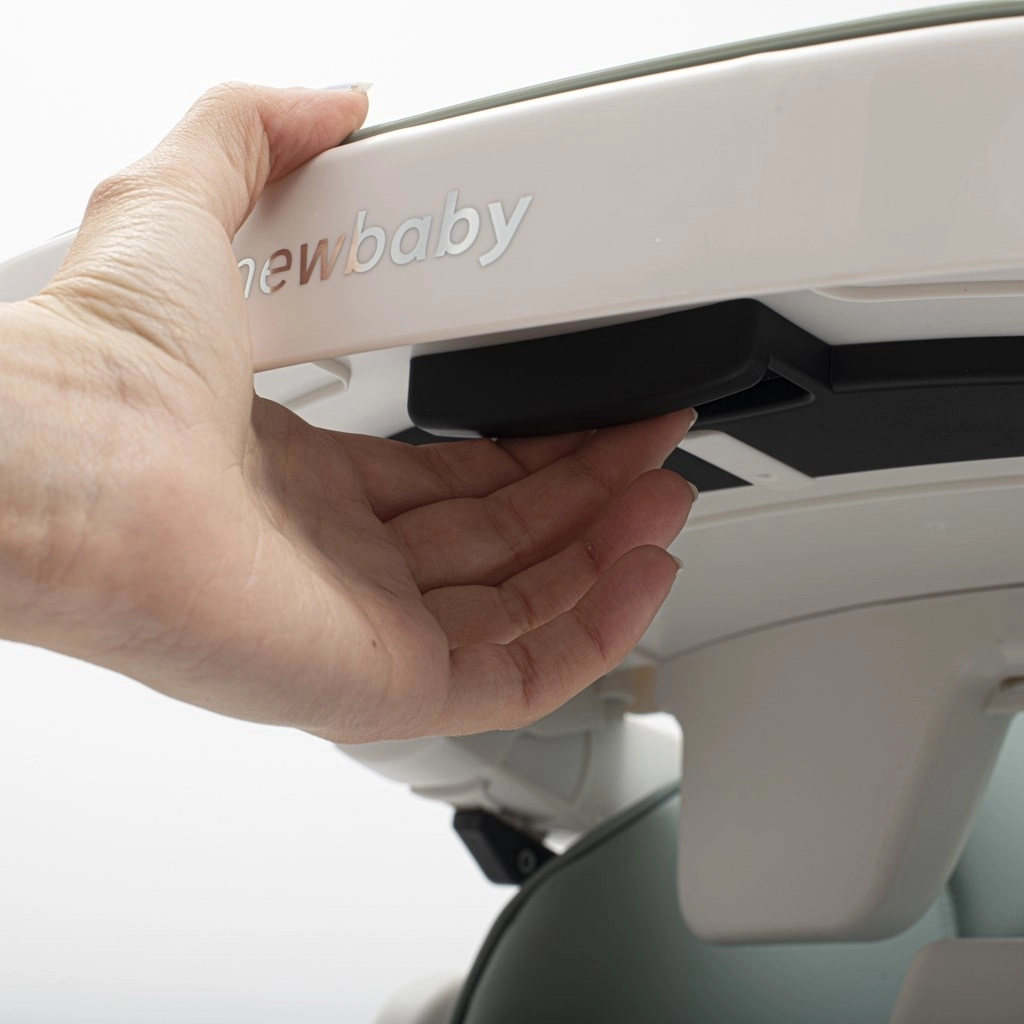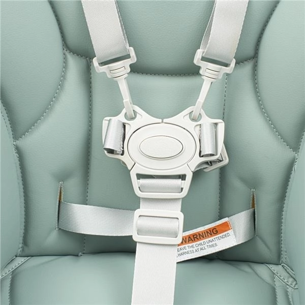 Praktisk og komfortabel børnehøjstol New Baby Muka i den moderne farve dusty green, der kombinerer sikkerhed, komfort og nem vedligeholdelse. Den tilbyder 6 ryglænspositioner, 5-trins højdejustering, 3-trins fodstøtte og blød polstring i økolæder, der er modstandsdygtig over for snavs. Takket være 5-punkts seler, dobbelt aftagelig bakke og stabil konstruktion er den et fremragende valg til daglig fodring og leg.