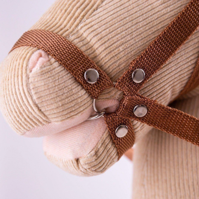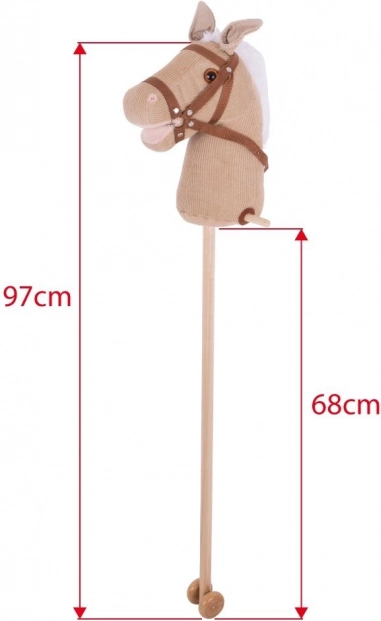 Cordfløjl kæphesten er den ideelle legeting for børn, der elsker at være i bevægelse. Denne hest har et blødt hoved i cordfløjl, en fyldig man og praktiske tøjler. To træhjul for enden af stangen sikrer jævn kørsel på flade overflader uden at efterlade spor.