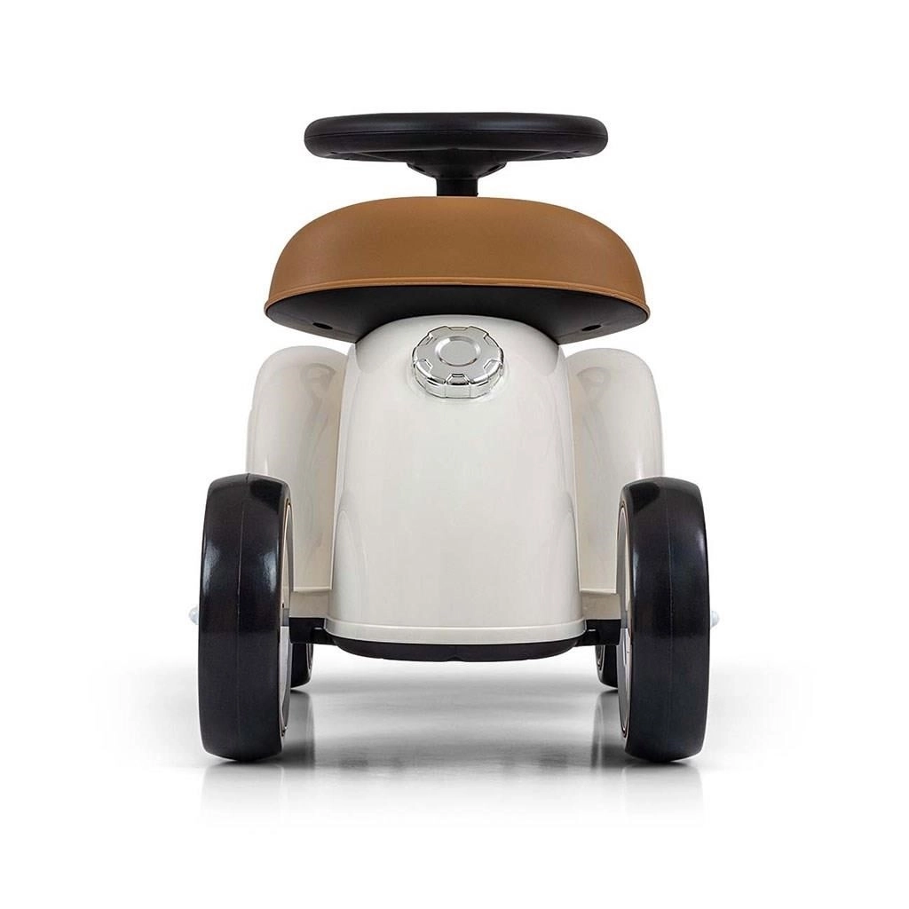 Løbecyklen i elegant beige kombinerer tidløst retrolook med praktiske løsninger til hverdagens leg. Takket være de ergonomiske former og det formede sæde er kørslen komfortabel, mens rattet med begrænset drejning hjælper med at reducere risikoen for at vælte. Børn udvikler balance, koordination og motoriske færdigheder på en sjov måde.