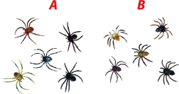 Hver edderkop i sættet har et realistisk udseende, der trofast efterligner de karakteristiske træk ved rigtige edderkopper.