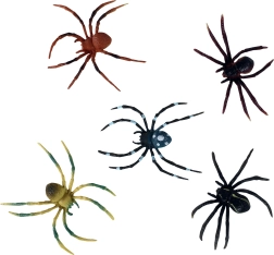 Berig dine dekorationer eller uddannelsesaktiviteter med dette sæt af fem plast edderkopper. Hver edderkop er omhyggeligt designet til at efterligne det sande udseende af forskellige arter, hvilket sikrer et realistisk og imponerende udseende: