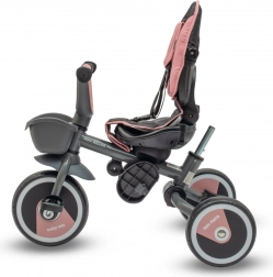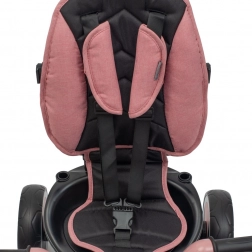 Denne trehjuler kombinerer komfort, sikkerhed og fleksibilitet. Det drejelige og justerbare sæde med regulerbar ryglænshældning muliggør kørsel både med og mod retningen, mens fempunktssele og aftagelig bøjle giver maksimal tryghed. Stor sammenklappelig kaleche med vindue beskytter mod solen og lader dig holde øje med barnet.