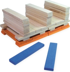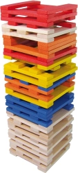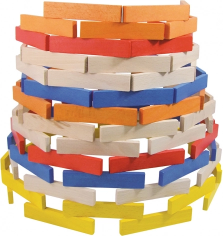 Sættet indeholder 100 solide, glatte brikker i natur og stærke farver – ideelle til tårne, huse og originale konstruktioner.