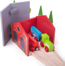 Depotet er fremstillet af kvalitetsmaterialer fra ansvarlige kilder og opfylder gældende europæiske sikkerhedsstandarder. Det er fuldt kompatibelt med andre trætogbaner på markedet, så det nemt kan indgå i ethvert sæt. Leg med depotet udvikler fantasi, finmotorik og koordination.