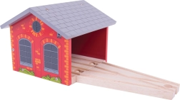 Udvid din bane med et stilfuldt murstensdepot, hvor du nemt kan parkere op til to tog. Takket være den medfølgende indkørselsskinne tilslutter du depotet ubesværet til den eksisterende strækning og skaber et realistisk område til pauser, vedligeholdelse eller tankning af togsæt. Den robuste trækonstruktion og det tidløse design sikrer lang levetid og sikker leg.