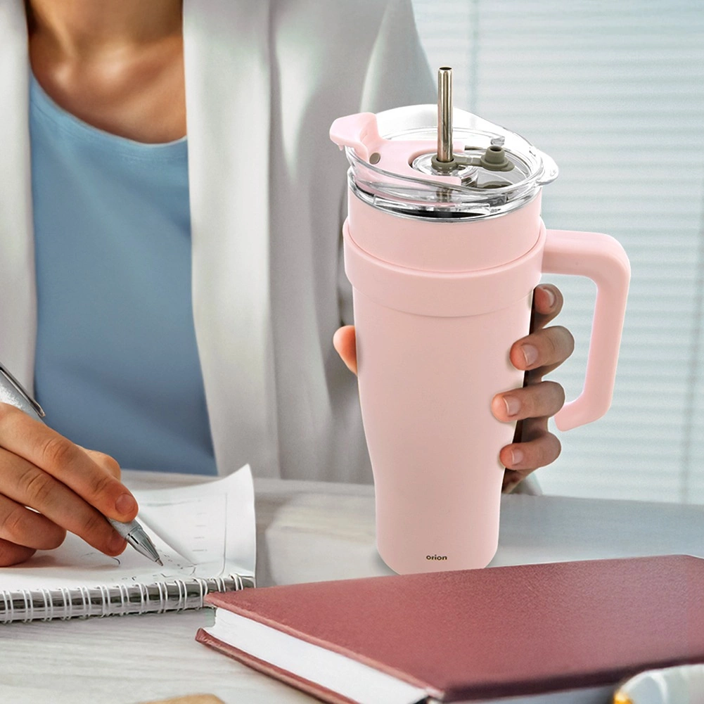 Låget med siliconepakning minimerer risikoen for spild, åbningen til sugerør kan lukkes med en siliconeprop, og du kan også drikke gennem en separat lukbar åbning. Den tilspidsede bund passer bedre i kopholdere i bilen, og det store håndtag gør transporten lettere.