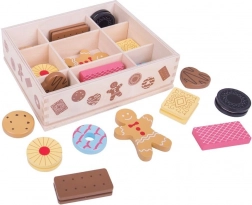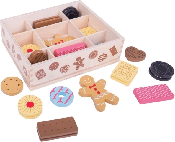 Vi præsenterer trækassen med legetøjskager, som indeholder et udvalg af populære kager, herunder peberkager og andre lækkerier. Dette sæt gør det muligt for små børn at udvikle deres kreativitet gennem lege inspireret af bagning.