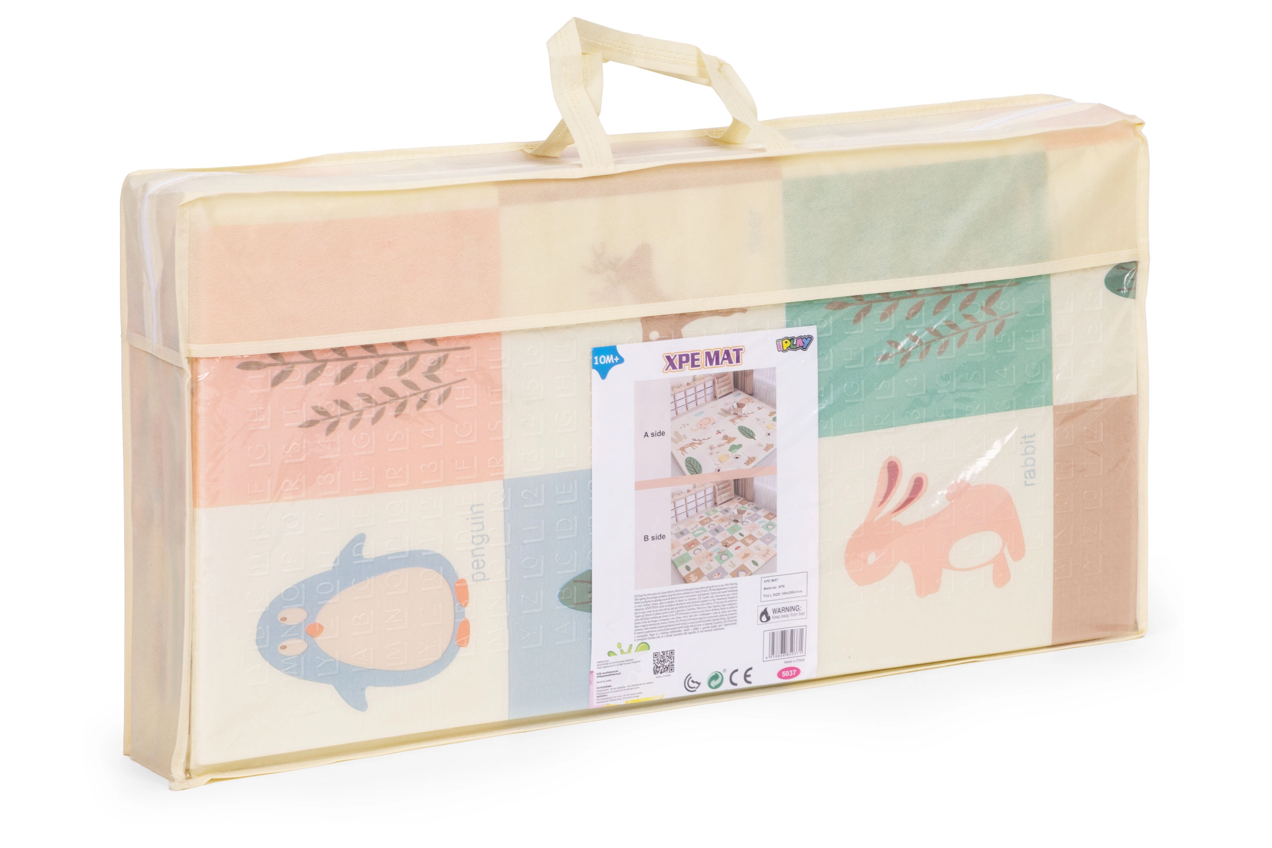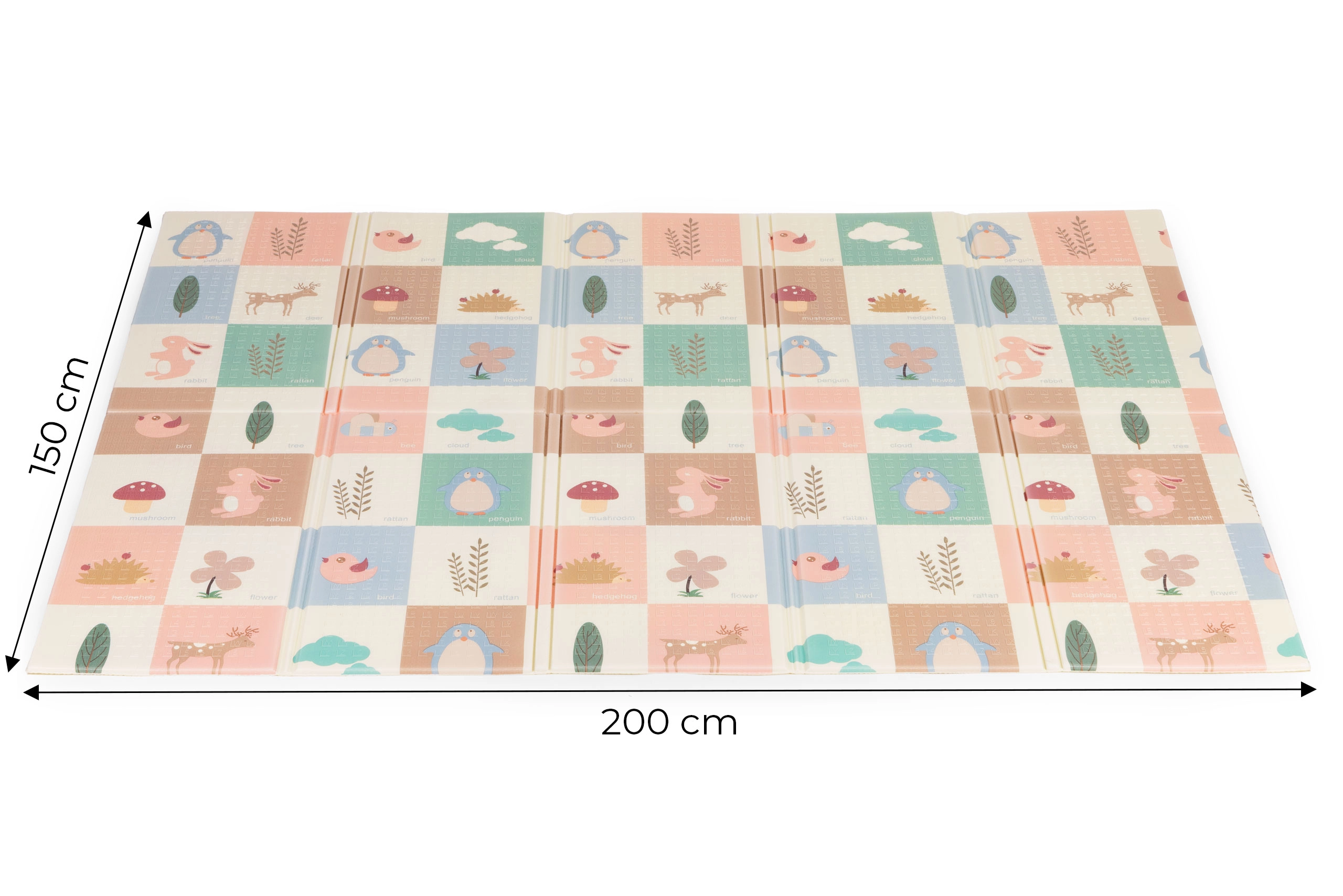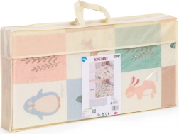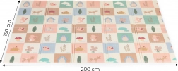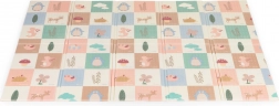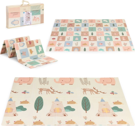 Skab et sikkert og behageligt sted til leg, kravlen og de første skridt. Måtten af kvalitetsXPE-skum absorberer stød, isolerer mod kulde, og dens skridsikre struktur hjælper med at give stabilitet selv under livlig leg. Det dobbeltsidede design giver dobbelt så meget sjov – den ene side prydes af skovens verden med dyr, den anden byder på lærende elementer med billeder og ord til sjov læring.
