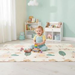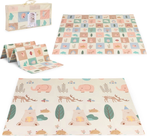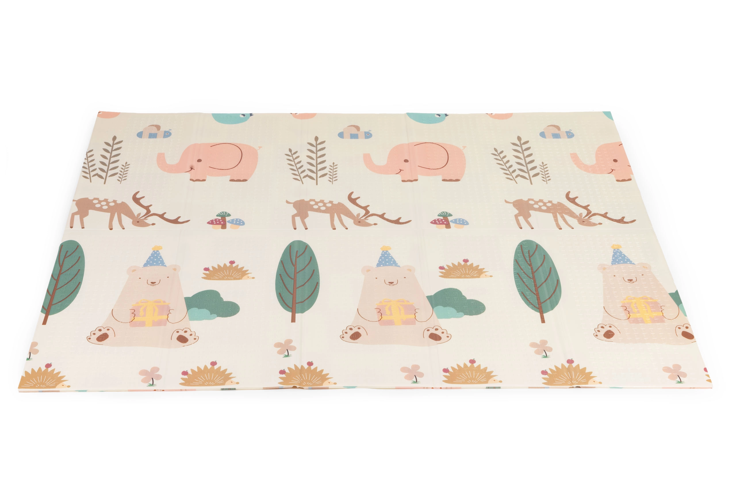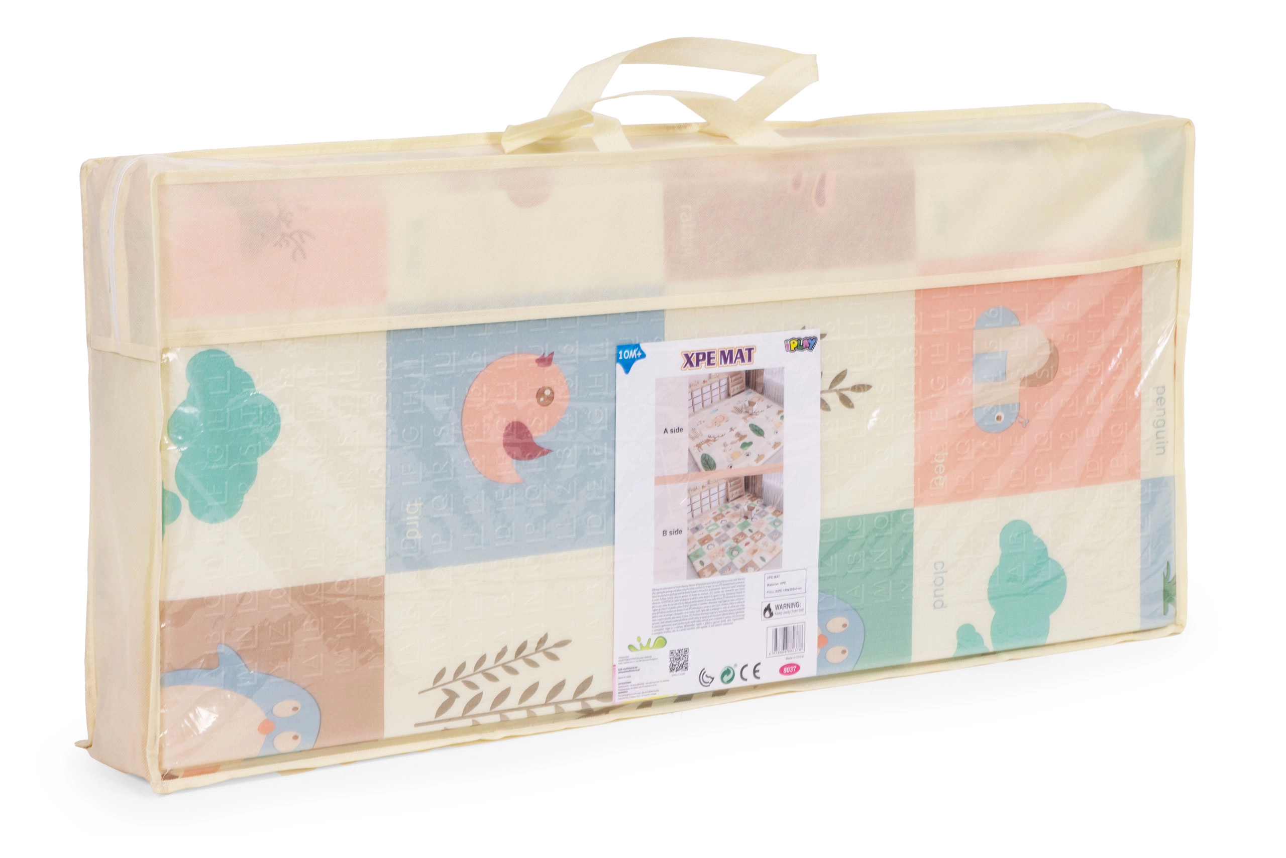 Dette børnelegeunderlag af kvalitetsXPE-skum skaber et blødt, sikkert og hygiejnisk sted for både spædbørn og tumlinger. Begge sider har farverige, lærerige motiver med dyr og natur, som fremmer kreativitet og naturlig læring. Skridsikker tekstur på begge sider holder underlaget på plads under kravlen, når der bygges med klodser, og ved de første skridt.