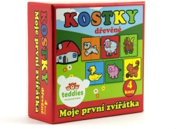 Træbilledklodserne Mine første dyr fra mærket TEDDIES er et fremragende valg til de første puslespil. Fire kvalitets træklodser i en praktisk papæske gør det muligt at samle seks forskellige motiver af husdyr. Børn får sjov både ved at lægge billederne og ved at bygge tårne, slotte eller små indhegninger til dyrene.