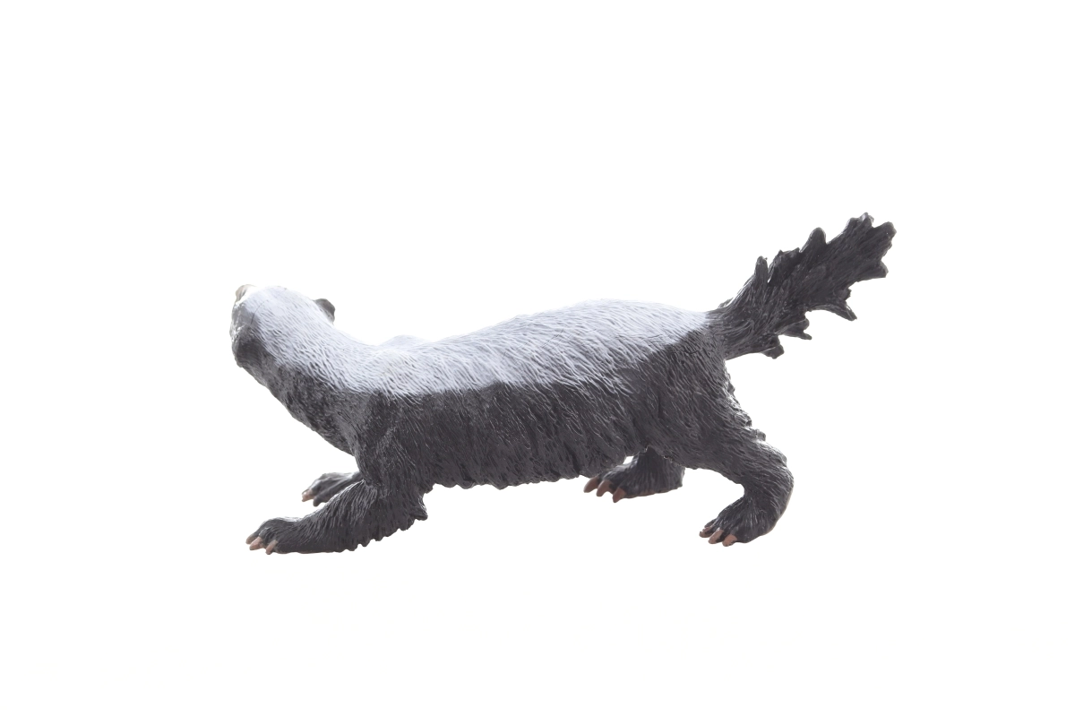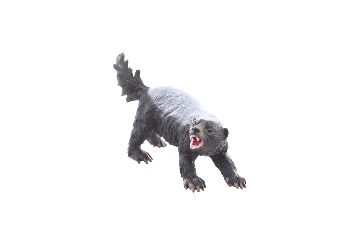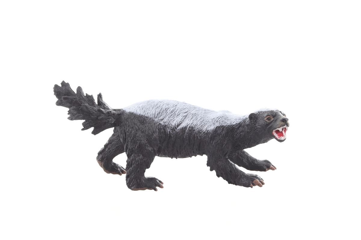 Detaljeret model af honninggrævling med åben gab og pelsstruktur, der stimulerer fantasien og viden om naturen.