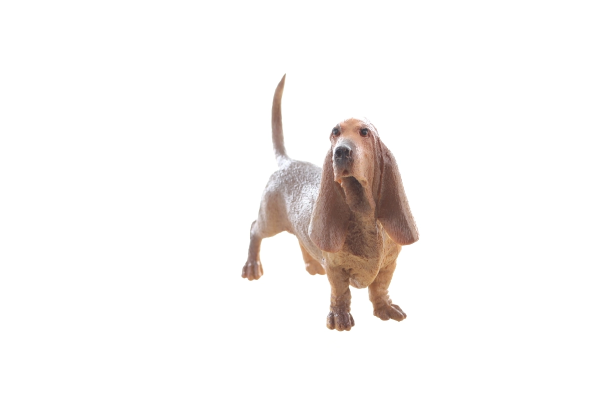 Trofaste proportioner, lange hængende ører og detaljeret pelsstruktur understøtter leg og kendskab til hunderacer.