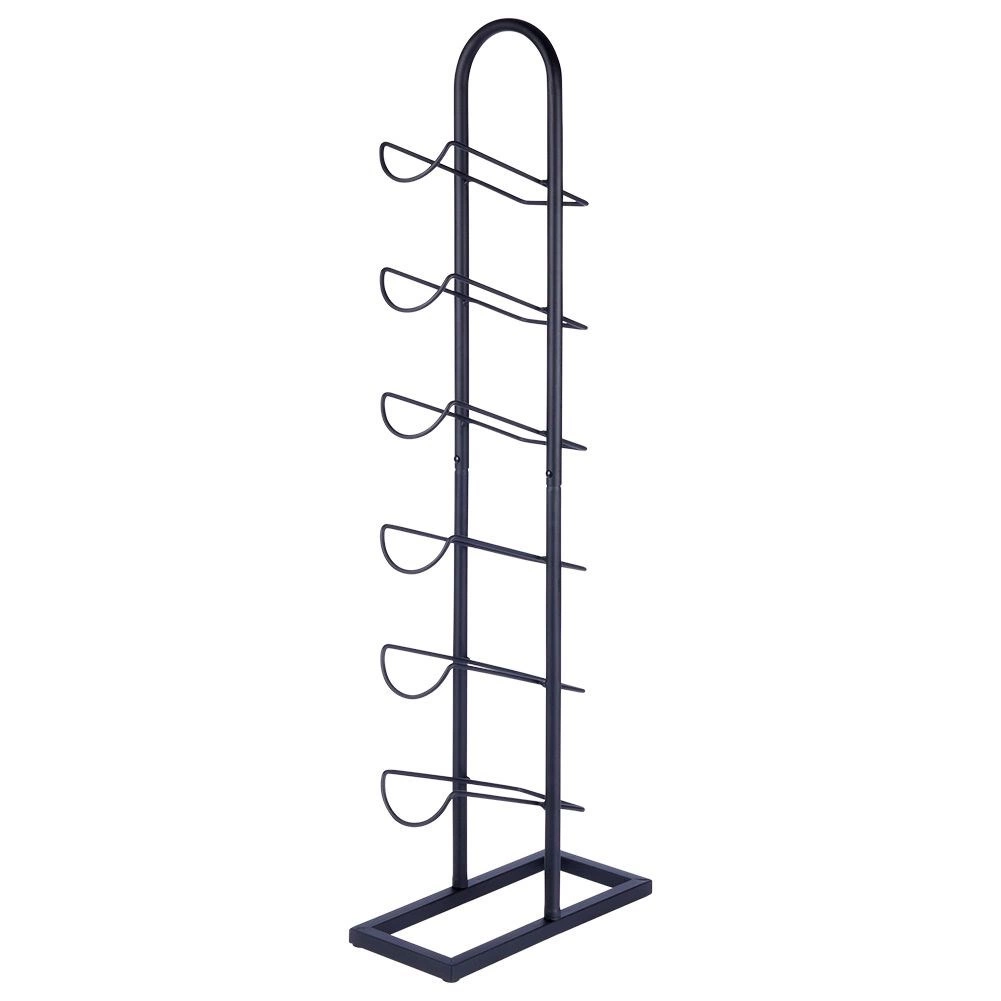 Denne fritstående vinreol kombinerer minimalistisk design med praktisk anvendelse. Den robuste metalkonstruktion med mat sort finish passer til både moderne og klassiske interiører og giver sikker og overskuelig opbevaring af op til seks flasker.