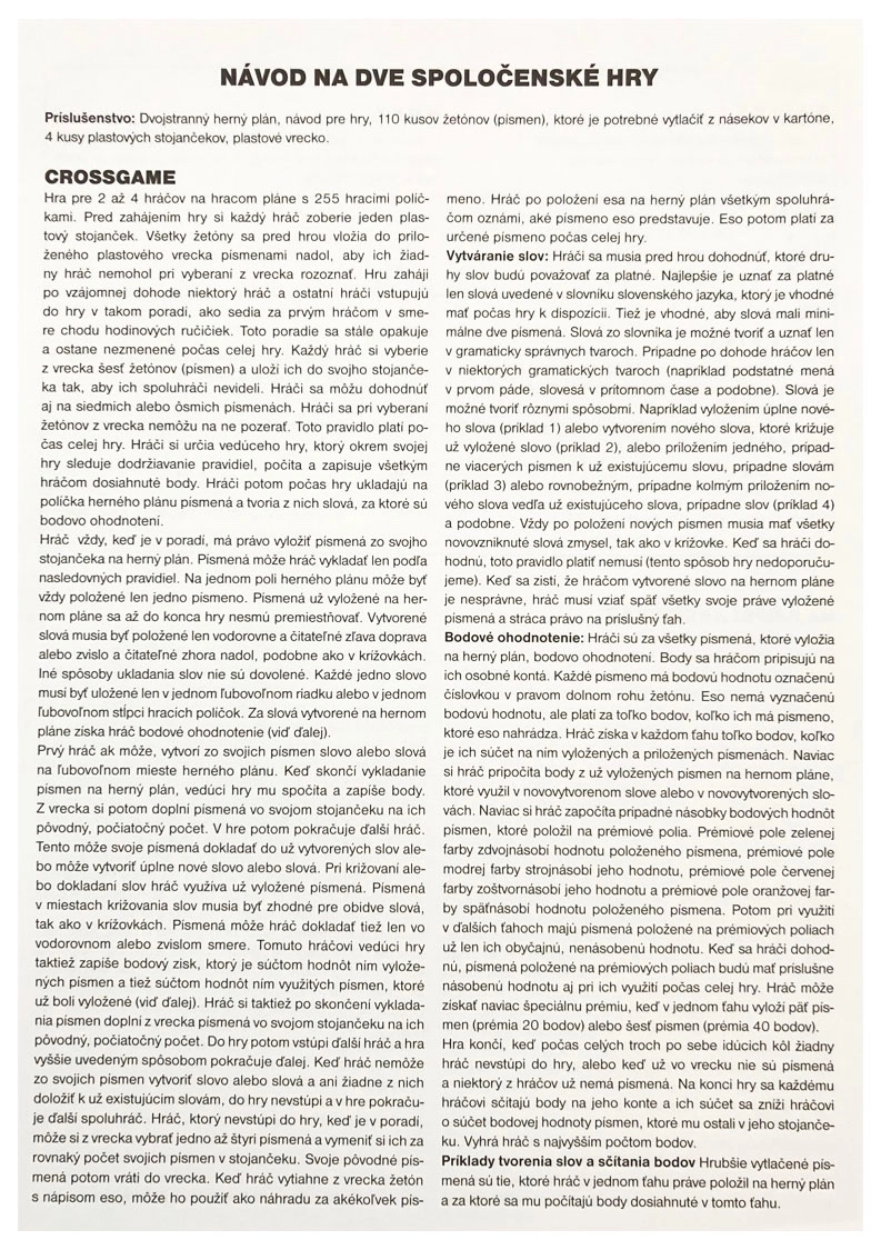 Crossgame bringer en dobbelt portion underholdning i én pakke: to originale ordspil fra krydsordsuniverset, der udfordrer hjernen og underholder hele familien. Spillerne sætter ord sammen af bogstaver, taktikerer med placering og konkurrerer om den højeste score.