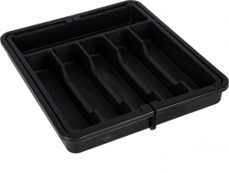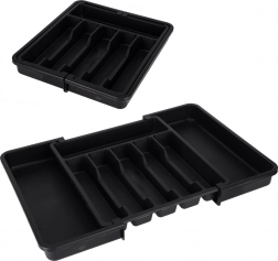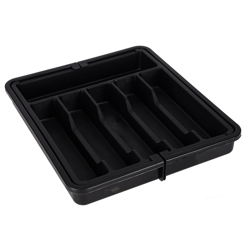 Den gennemtænkte inddeling med 8 rum separerer bestik og småredskaber, så alt er lige ved hånden. Kvalitetsplasten er modstandsdygtig over for slitage og hjælper med at beskytte skuffebunden mod snavs og ridser. Med den enkle udtrækning skaber du ekstra plads på få sekunder.