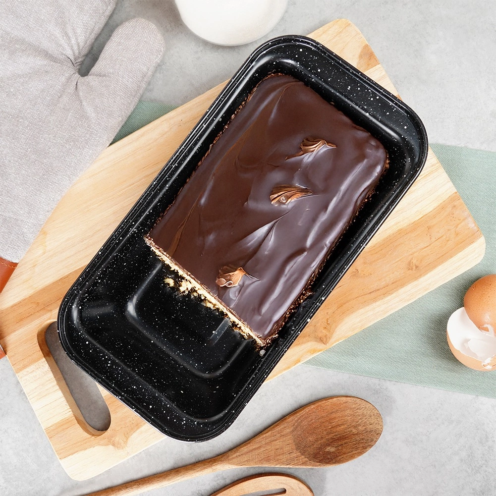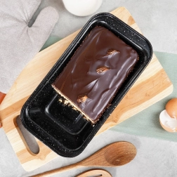 Denne rektangulære form af kvalitetskulstofstål med granit non-stick-belægning er ideel til hjemmebag af brød, kiks, sandkager og paté. Materialet sikrer hurtig og jævn opvarmning, så dine kreationer altid bliver smukt og ensartet gennembagte.