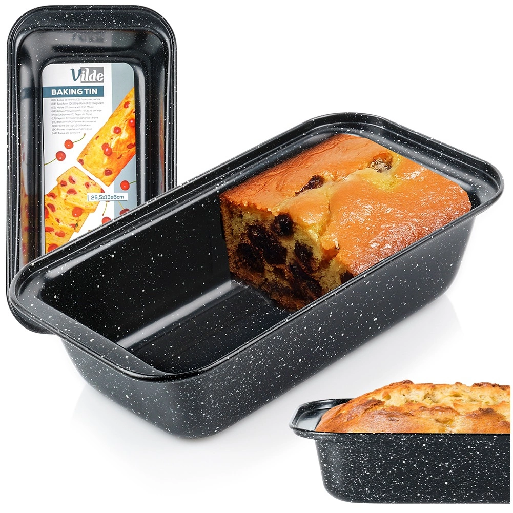 Praktisk granitform til bagning af brød, sandkage- og småkagedej eller paté. Takket være den non-stick granitbelægning, jævn varmefordeling og varmeresistens op til 230 °C opnår du perfekte resultater selv med minimalt fedt. Nemt vedligehold og alsidig brug i både gas- og elovne.