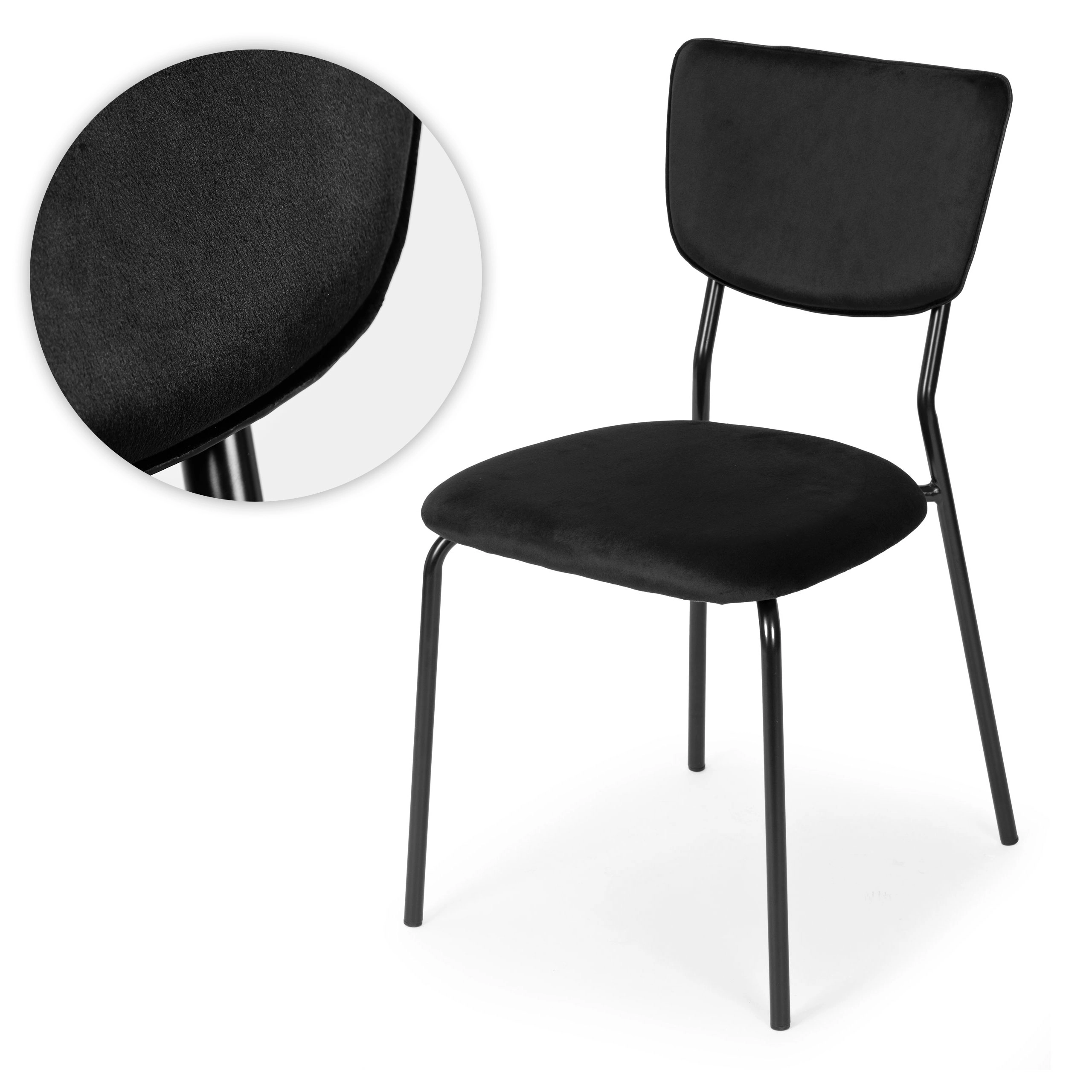 Opgrader din indretning med en kombination af elegance og funktionalitet. De sorte fløjlsstole fra ModernHome passer til både moderne og klassiske rum – fra spisestuen over stuen til kontoret eller caféen. Den bløde sædehynde med kvalitetsfyld og det ergonomiske ryglæn giver komfort ved daglig brug.