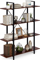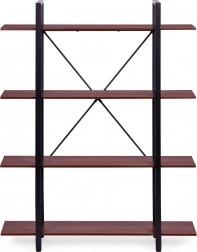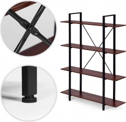 Den stabile metalramme med krydsafstivning på bagsiden og hylder i MDF sikrer lang holdbarhed ved daglig brug. Justerbare fødder beskytter gulvet og hjælper med at nivellere reolen perfekt. Hver hylde bærer op til 10 kg, så alting står sikkert på plads.