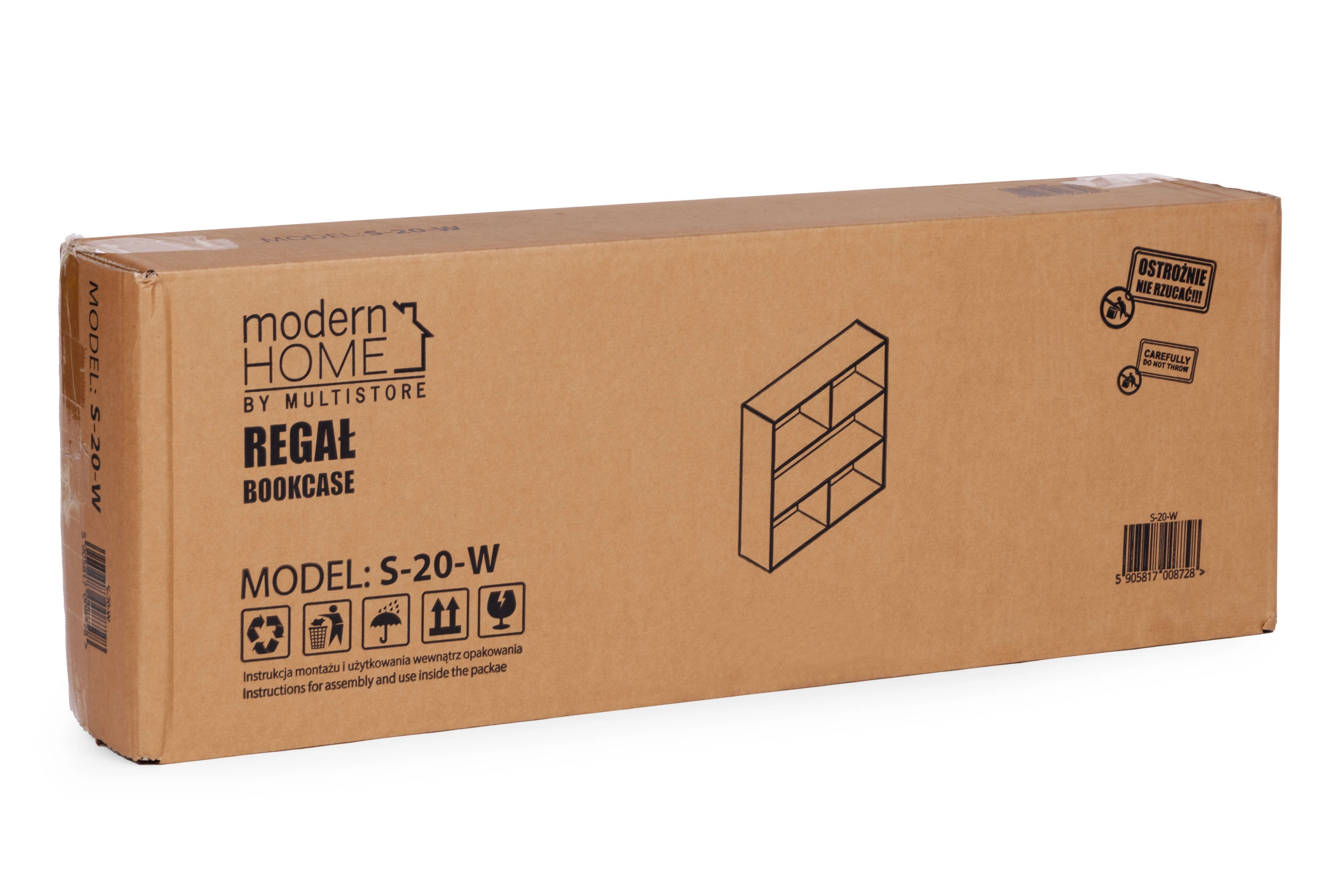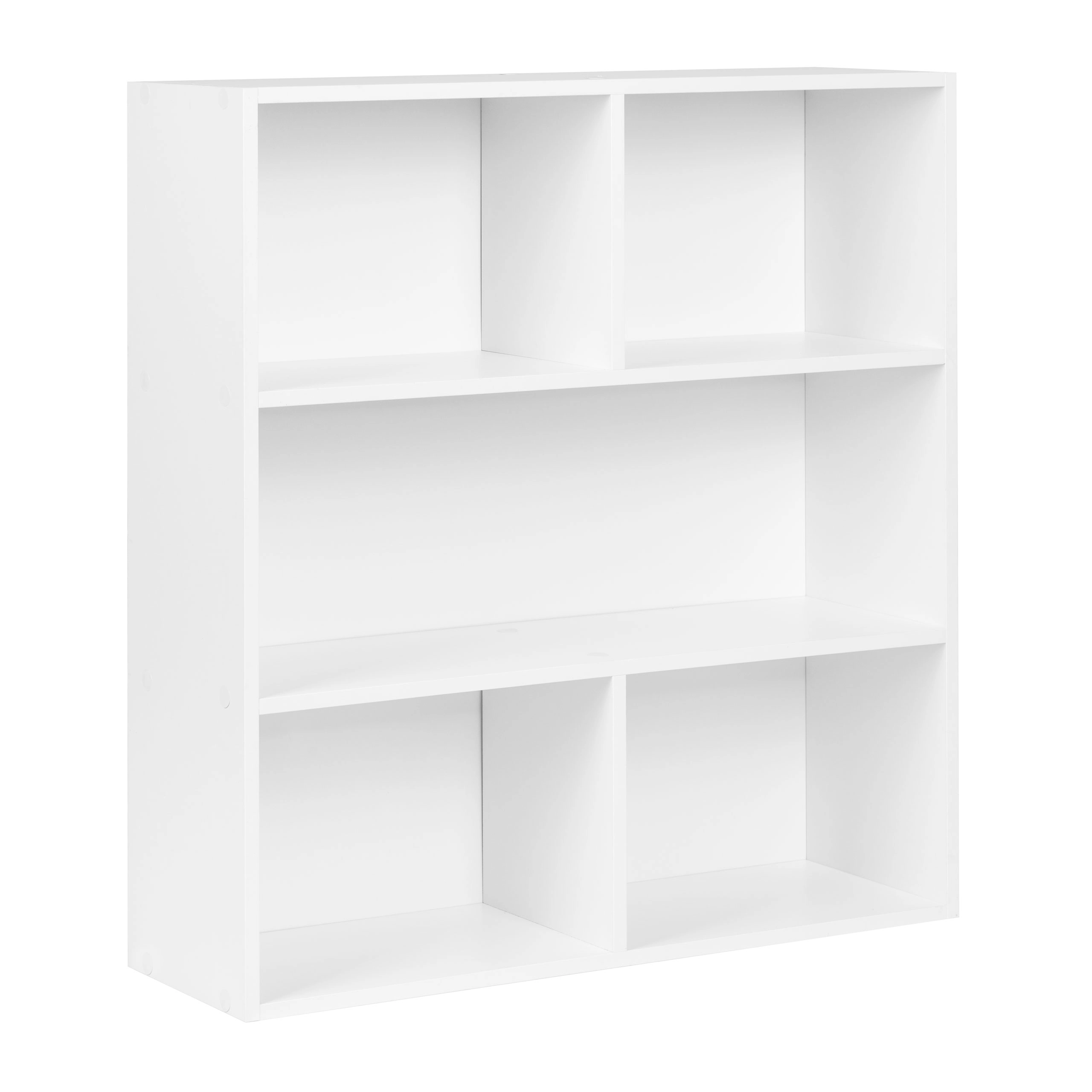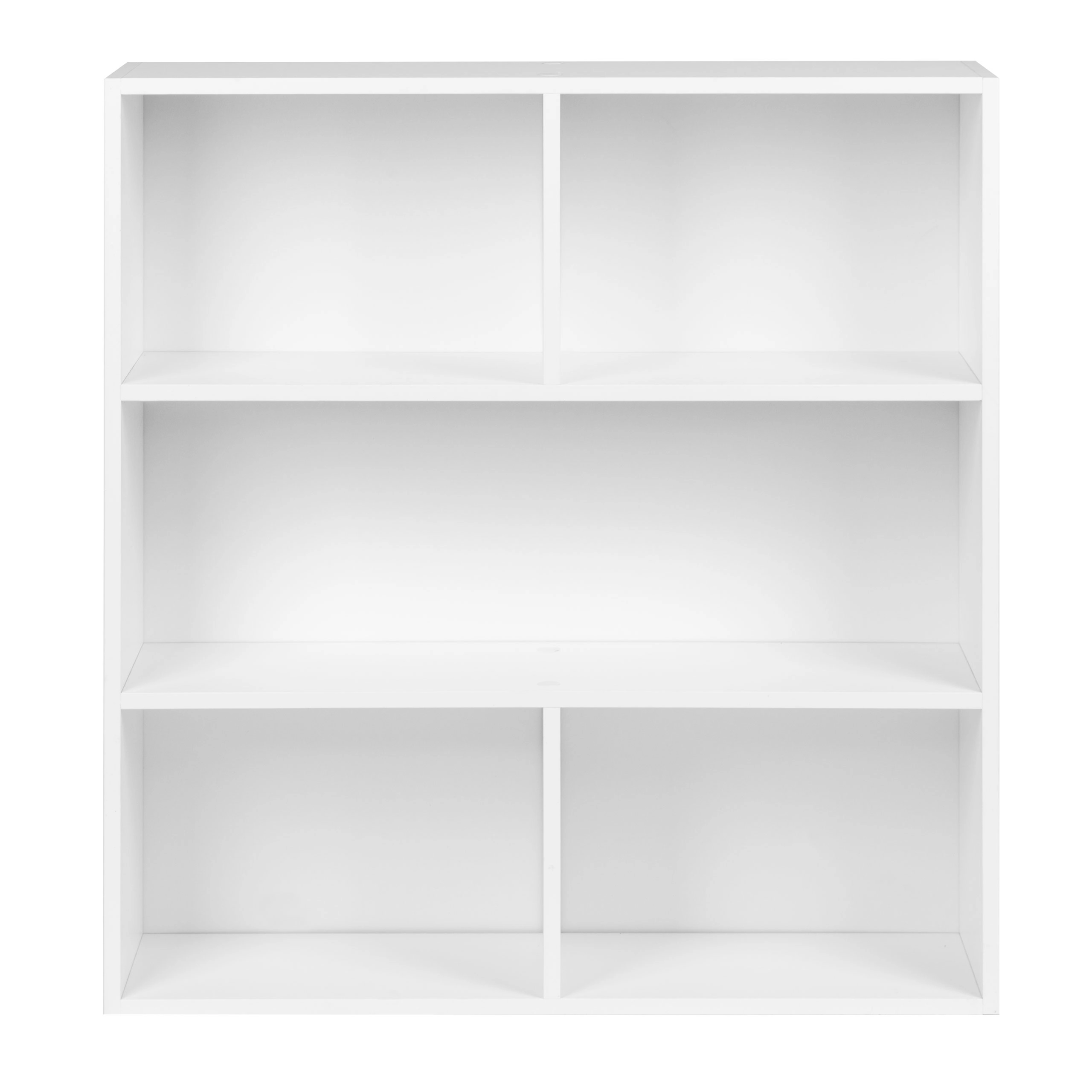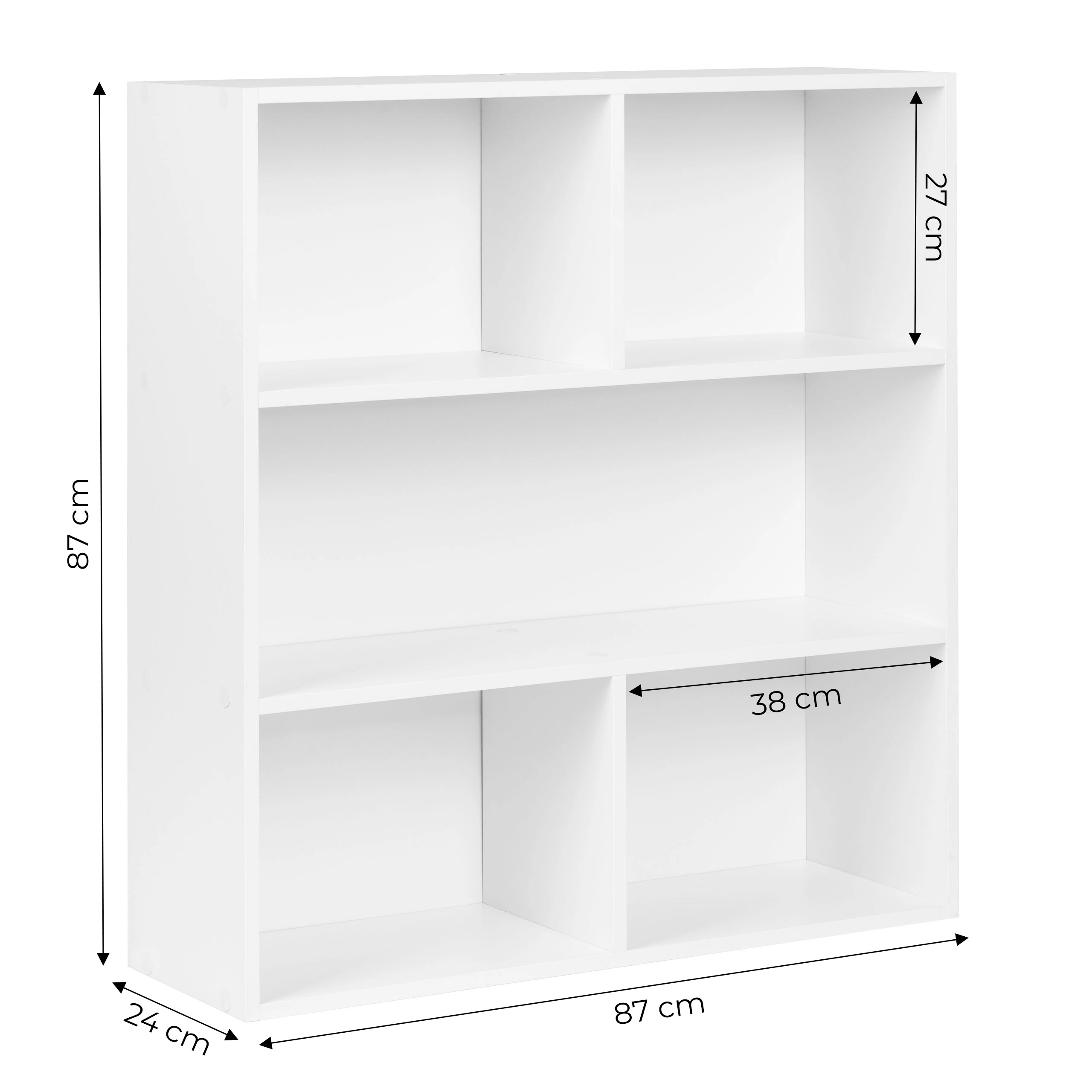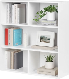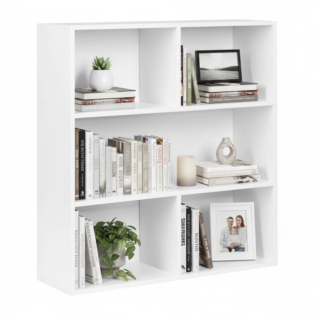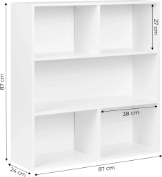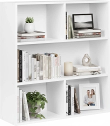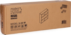 Den elegante fritstående reol MODERNHOME bringer et rent, minimalistisk look og en smart opdeling af pladsen. Tre rummelige hylder giver plads til bøger, dekorationer, dokumenter og bokse, mens den matte hvide overflade nemt matcher moderne, skandinaviske og klassiske interiører.
