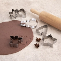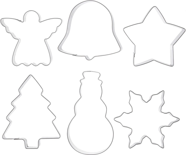 Oplev bageglæde med et elegant sæt på 6 udstikkere af kvalitets rustfrit stål. Former som stjerne, træ, engel, klokke, snefnug og snemand giver skarpe linjer og festlig stemning på dit bord. Udstikkerne er solide, holdbare og kan holde i årevis med den rette pleje.