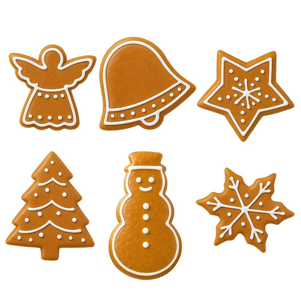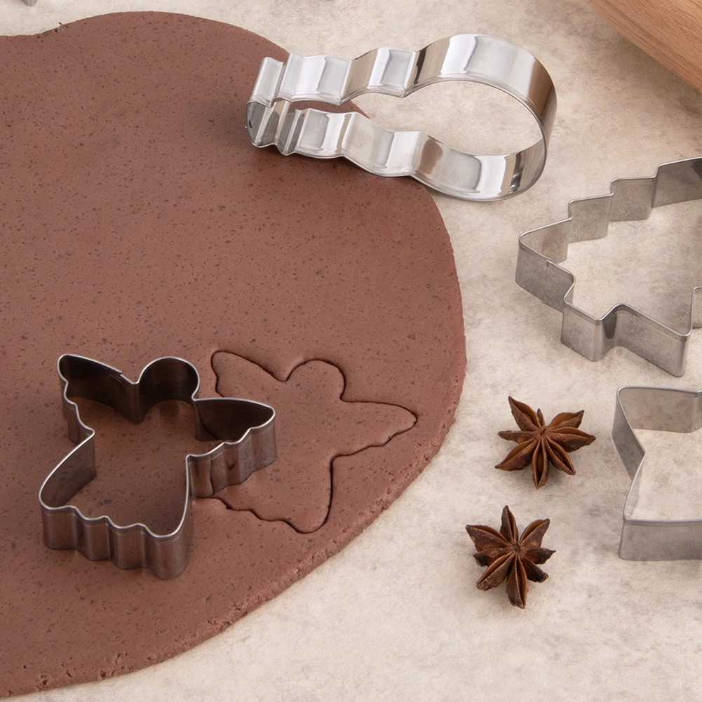 Engel, klokke, stjerne, juletræ, snemand og snefnug – alt til kreativ bagning og festlig pynt.