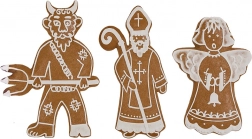 Engel, djævel og Sankt Nikolaus til legende og tematisk bagning i adventstiden.