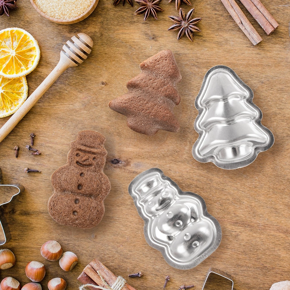 Komplet sæt forme i juletræsform til bagning af småkager, honningkager og praliner – ideelt til tilberedning af større portioner.