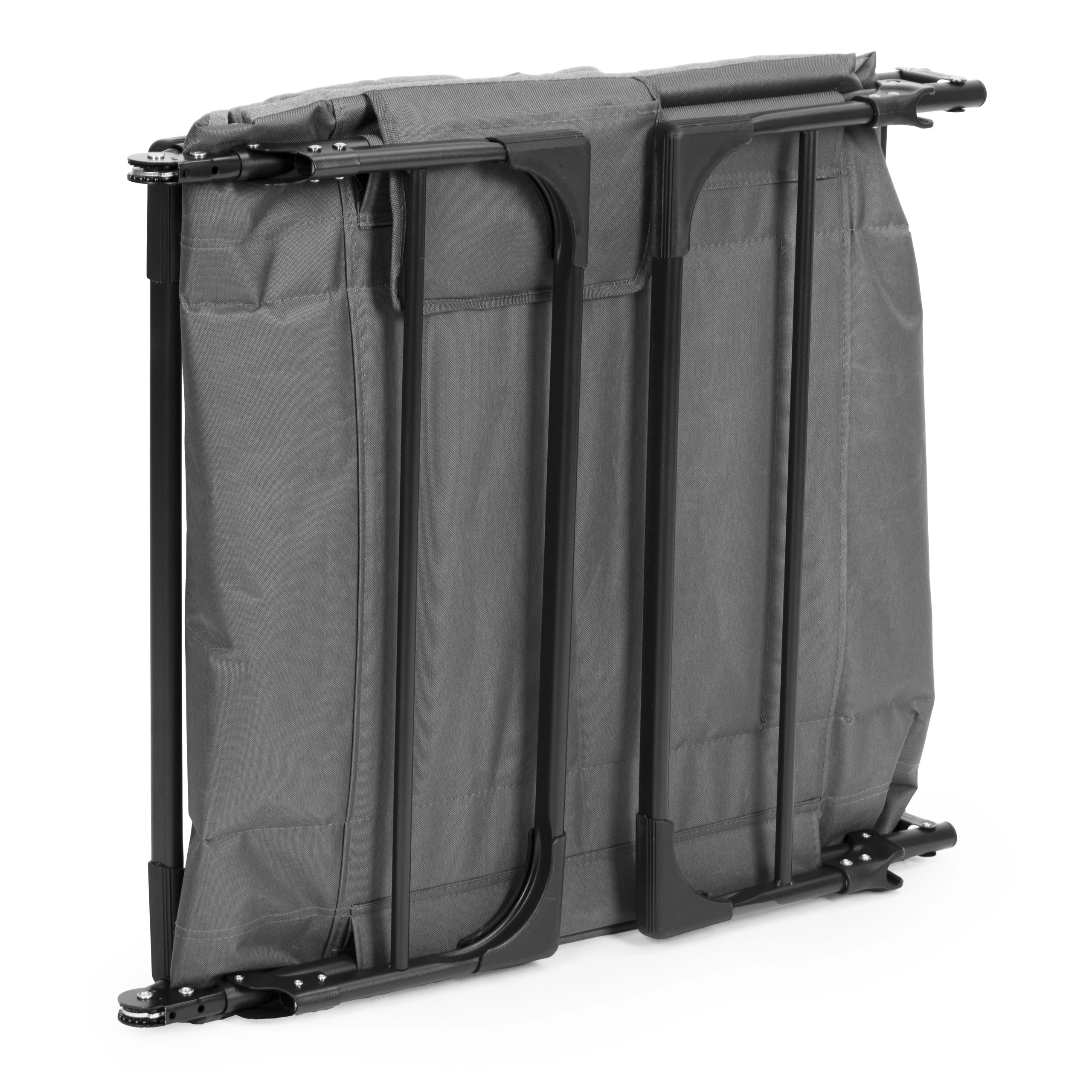 Praktisk og komfortabel liggestol til camping, terrasse og have. Den stabile, pulverlakerede stålramme og det robuste Oxford 600D-stof sikrer lang levetid og komfort under hvile. Ryglænet kan justeres i 5 niveauer, så du nemt skifter fra helt fladt leje til afslappet position.