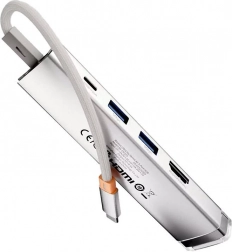 BASEUS UltraJoy er en elegant og kraftfuld USB‑C hub til arbejde og underholdning. Den tilbyder skarpt billede i 4K ved 60 Hz, hurtig dataoverførsel via USB 3.0 op til 5 Gb/s, stabil netværksforbindelse via RJ45 1000 Mb/s og gennemgående Power Delivery 100 W til opladning af bærbar og andre enheder. Kabinettet i aluminiumslegering 6063 og de kompakte mål gør den til en ideel rejsemakker.