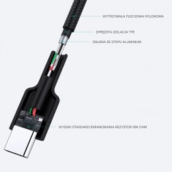 Det flettede nylonkabel udmærker sig ved høj fleksibilitet og modstandsdygtighed mod knæk. Længden på 2 meter giver komfort derhjemme, på kontoret og på farten. OEM-versionen leveres i enkel emballage, inklusive praktisk velcrostrop til at samle kablet.