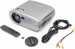 Den brede tilslutning gør det let at koble dine enheder: tilslut en bærbar via HDMI, afspil film fra USB eller SD-kort, eller brug VGA og AV. Den integrerede 3 W højttaler giver grundlæggende lyd, og for bedre lyd kan du tilslutte eksterne højttalere eller hovedtelefoner til 3,5 mm jack. Der medfølger en fjernbetjening for nem betjening.